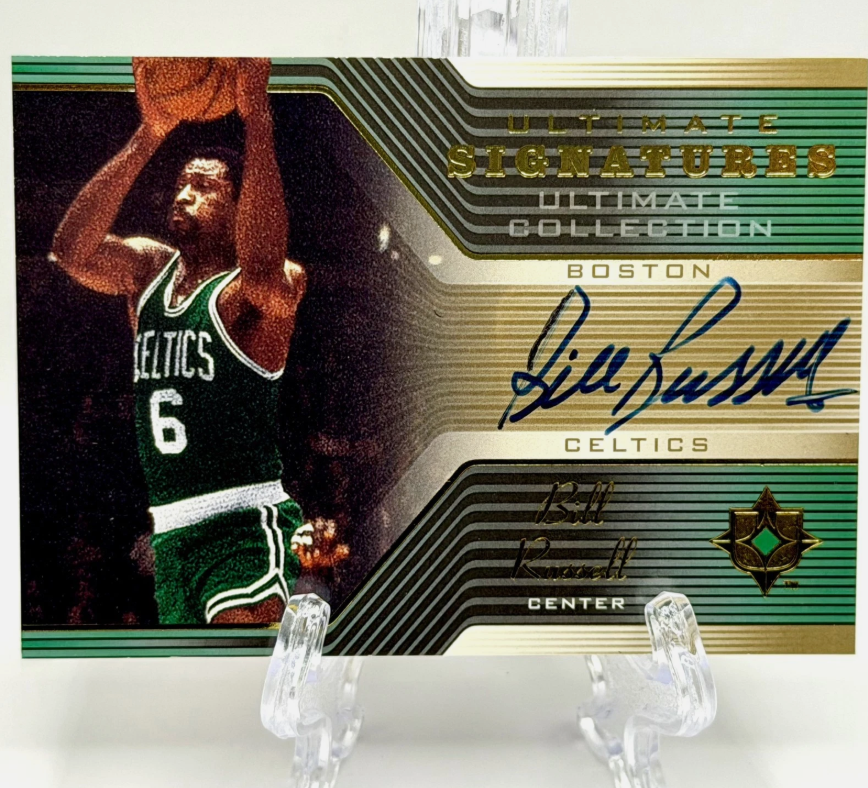 Own a piece of basketball history with the 2004-05 UD Ultimate Collection Bill Russell On-Card Autograph #US-BR. Featuring Russell’s autograph directly on the card, this collectible honors one of the greatest players in NBA history. With its premium design and limited production, it’s a must-have for serious collectors and fans of the Boston Celtics legend. Perfect for display or as a centerpiece in any high-end basketball card collection.