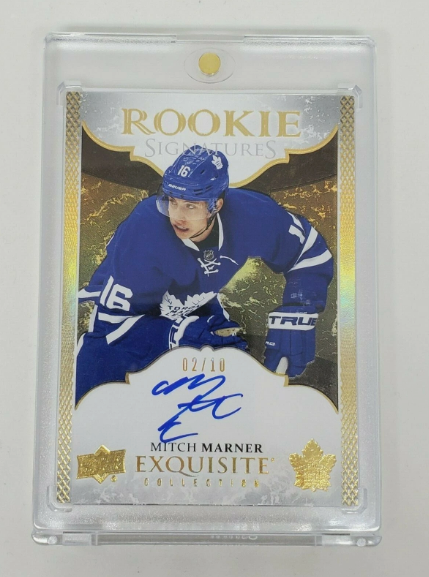 2016 Exquisite Collection Rookie Signatures — Mitch Marner /10, ultra-rare rookie autograph card.
