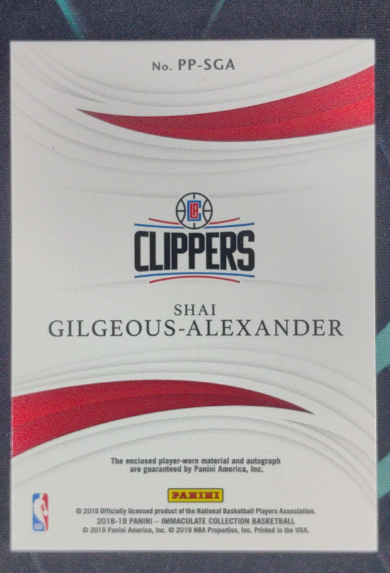 2018-19 Panini Immaculate Shai Gilgeous-Alexander Premium Patch Auto Red /25 RC