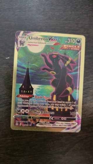 Add a striking piece to your Pokémon collection with this Golden Umbreon VMAX card. Featuring dynamic artwork, high rarity, and VMAX power, this card is both a display-worthy collectible and a valuable addition for serious Pokémon fans. Perfect for collectors looking to enhance their set with eye-catching and hard-to-find Pokémon cards, it combines aesthetic appeal with long-term collectible value.