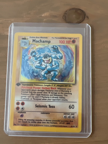 Own a piece of Pokémon history with this 1995 1st Edition Machamp card. As an iconic early Pokémon card, it holds nostalgic value for collectors and fans alike. While ungraded, its 1st Edition status and vintage appeal make it a sought-after addition for display, completing collections, or investing in classic Pokémon cards. A must-have for anyone building a high-quality, vintage Pokémon TCG collection.